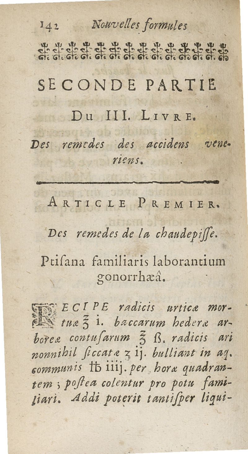 Nouvelles formules de medecine latines et francoises, pour le Grand-Hôtel-Dieu de Lyon utiles aux autres hôpitaux, tant des villes que des armées, & aux jeunes medecins, chirurgiens & apothicaires composées...augmentées d'un traité de la verole ; seconde edition