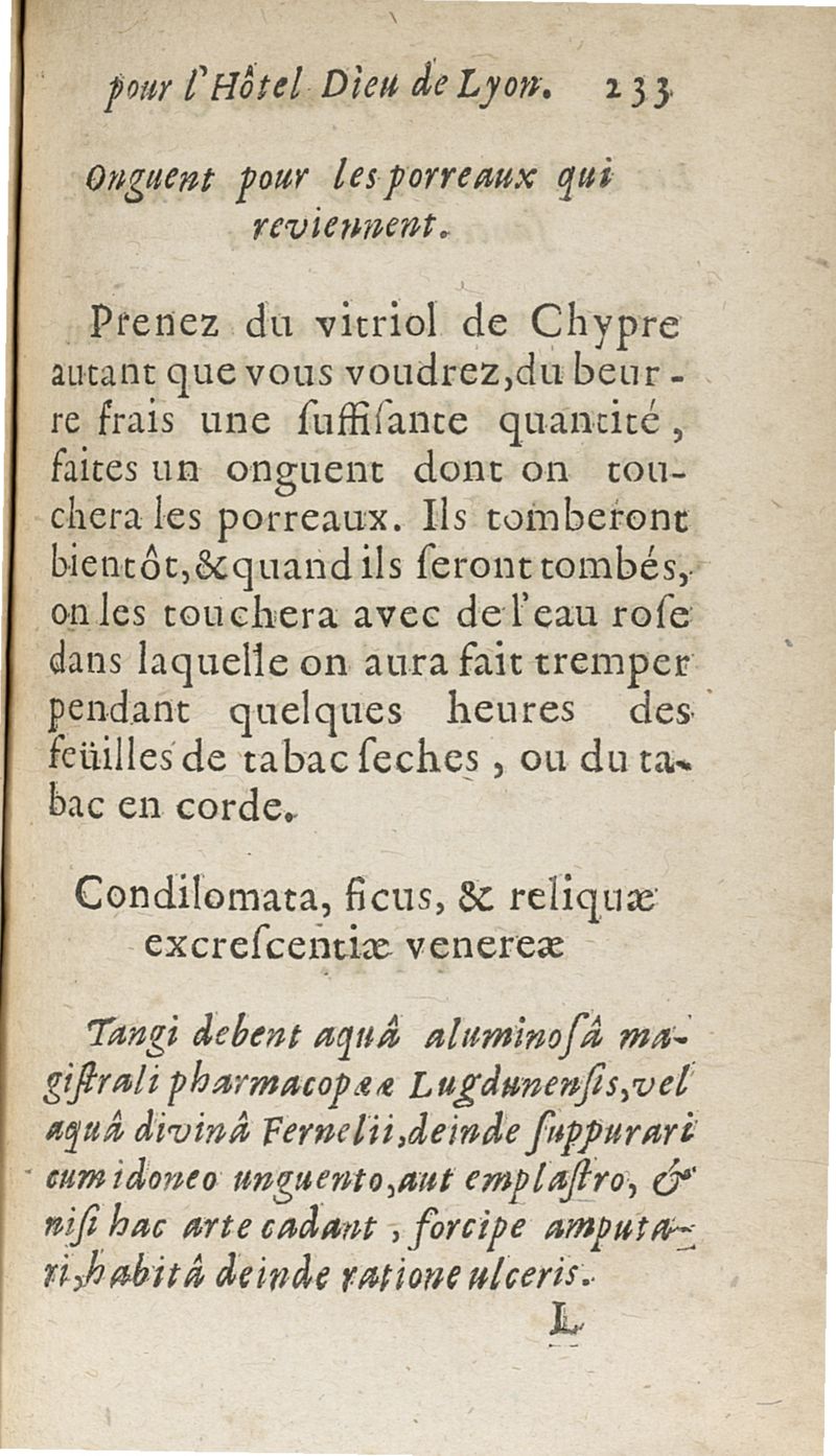 Nouvelles formules de medecine latines et francoises, pour le Grand-Hôtel-Dieu de Lyon utiles aux autres hôpitaux, tant des villes que des armées, & aux jeunes medecins, chirurgiens & apothicaires composées...augmentées d'un traité de la verole ; seconde edition
