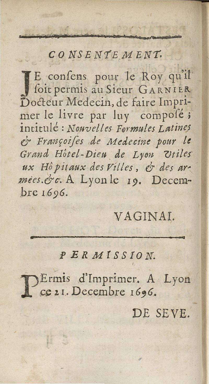 Nouvelles formules de medecine latines et francoises, pour le Grand-Hôtel-Dieu de Lyon utiles aux autres hôpitaux, tant des villes que des armées, & aux jeunes medecins, chirurgiens & apothicaires composées...augmentées d'un traité de la verole ; seconde edition