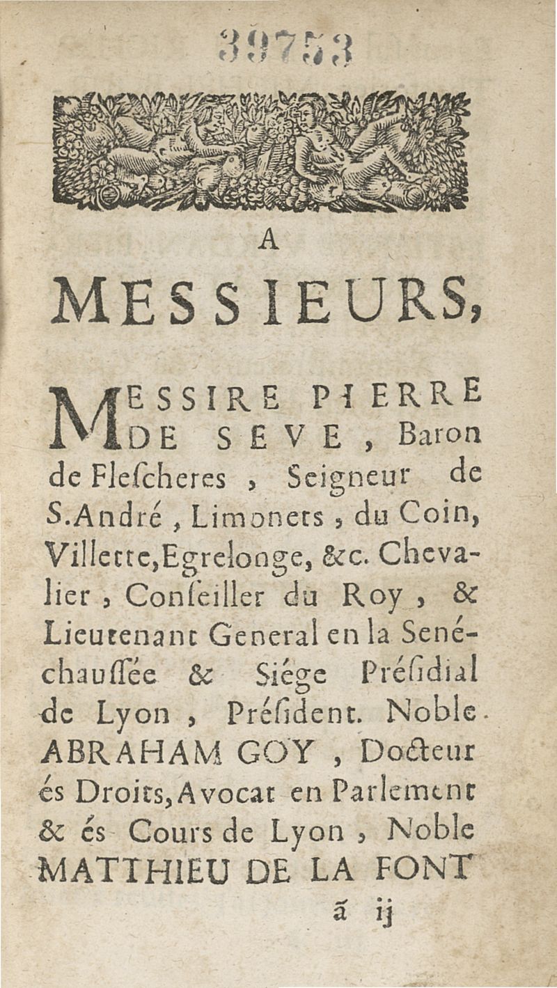 A Lyon : chez la vve de Jean-Baptiste Guillimin, 1699.