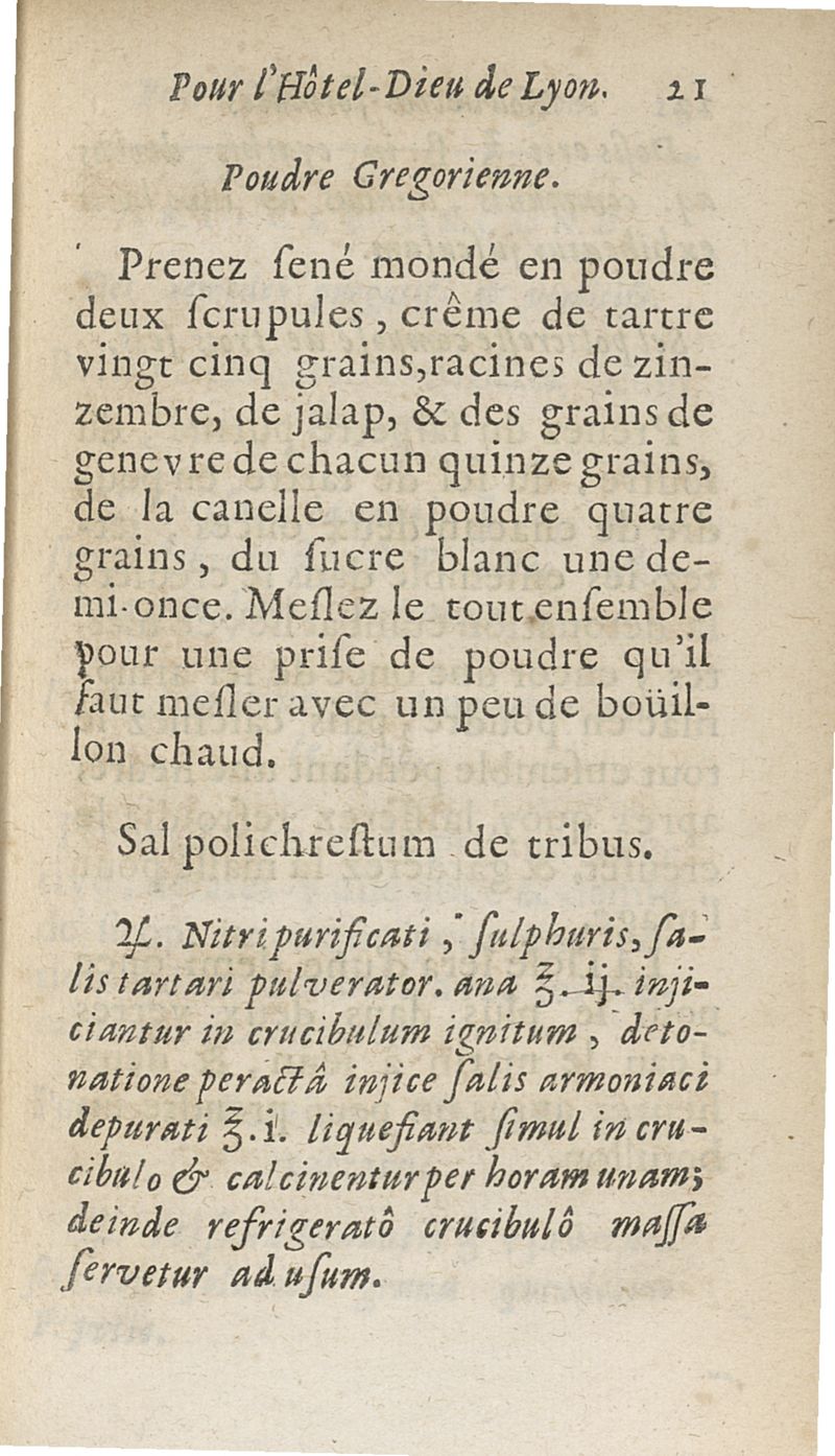 Nouvelles formules de medecine latines et francoises, pour le Grand-Hôtel-Dieu de Lyon utiles aux autres hôpitaux, tant des villes que des armées, & aux jeunes medecins, chirurgiens & apothicaires composées...augmentées d'un traité de la verole ; seconde edition