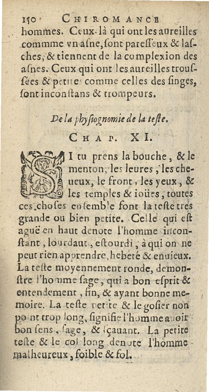 La Chiromance et phisiognomie par le regard des membres de l'homme..., le tout mis en françois par Antoine du Moulin masconnois