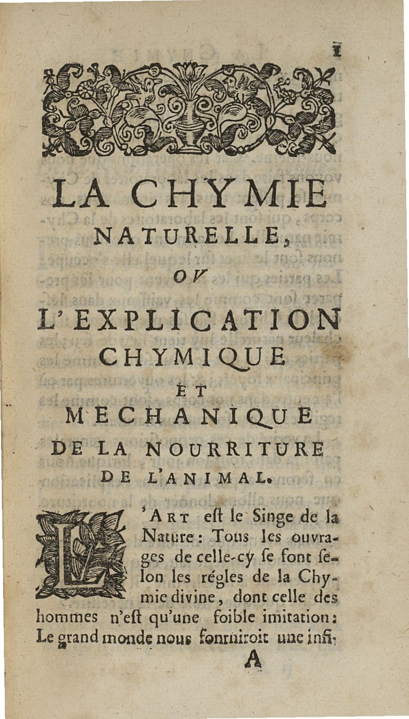 La chymie naturelle, ou l'explication chymique et mechanique de la nourriture de l'animal...