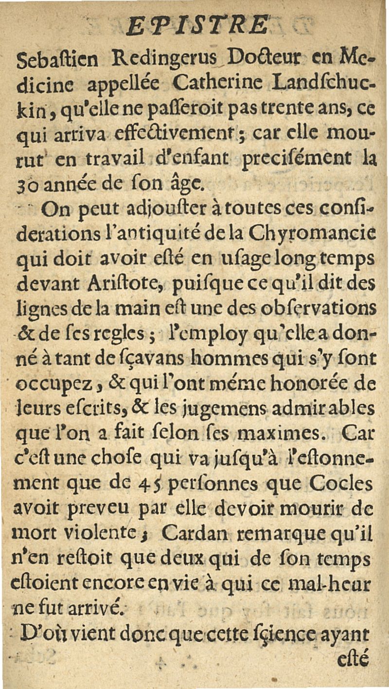 La chiromancie medicinale. Accompagnée d'un Traité de la physionomie, & d'un autre des marques qui paroissent sur les ongles des doigts...trad. par Philippe Henry Treusches