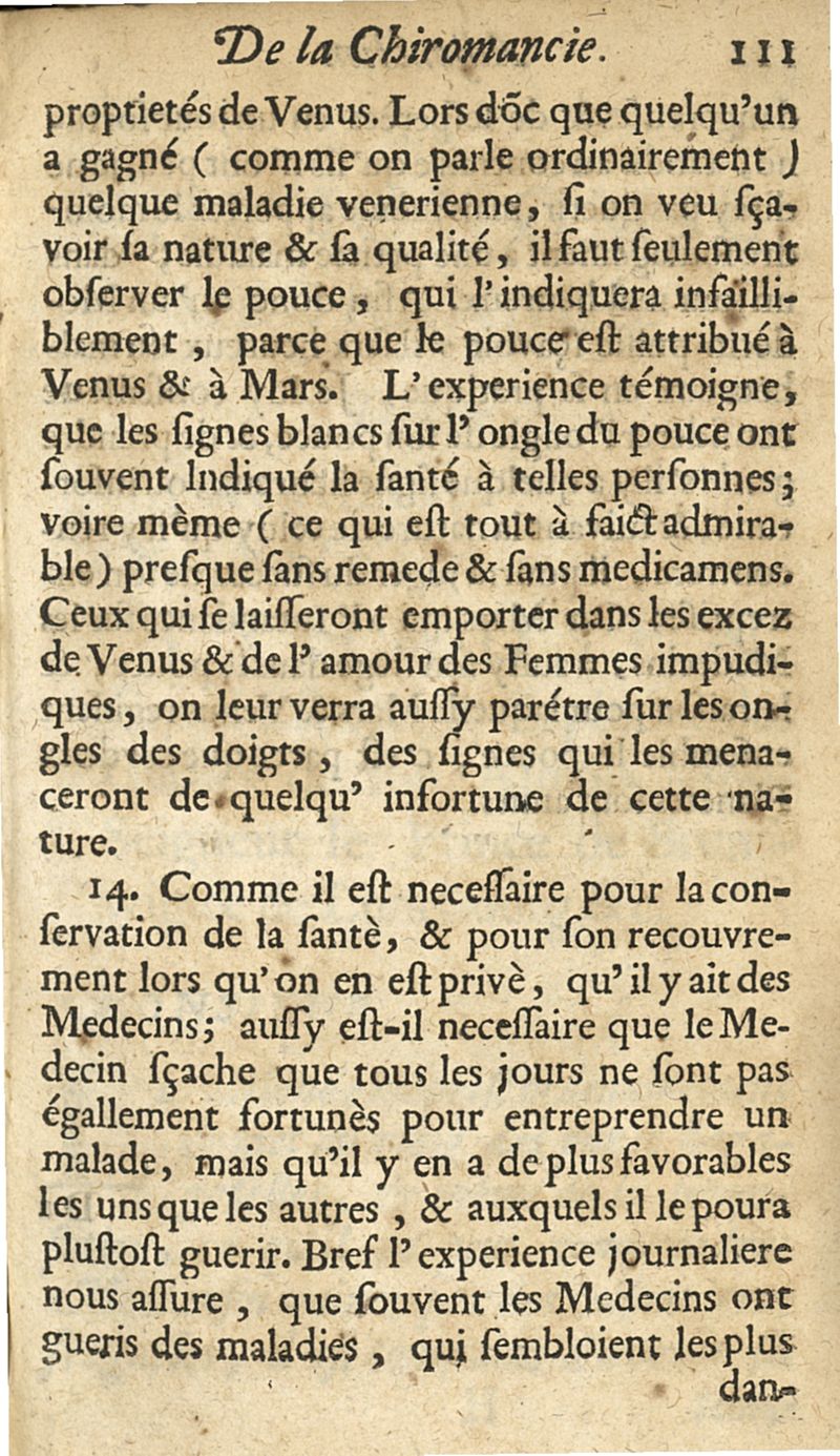 La chiromancie medicinale. Accompagnée d'un Traité de la physionomie, & d'un autre des marques qui paroissent sur les ongles des doigts...trad. par Philippe Henry Treusches