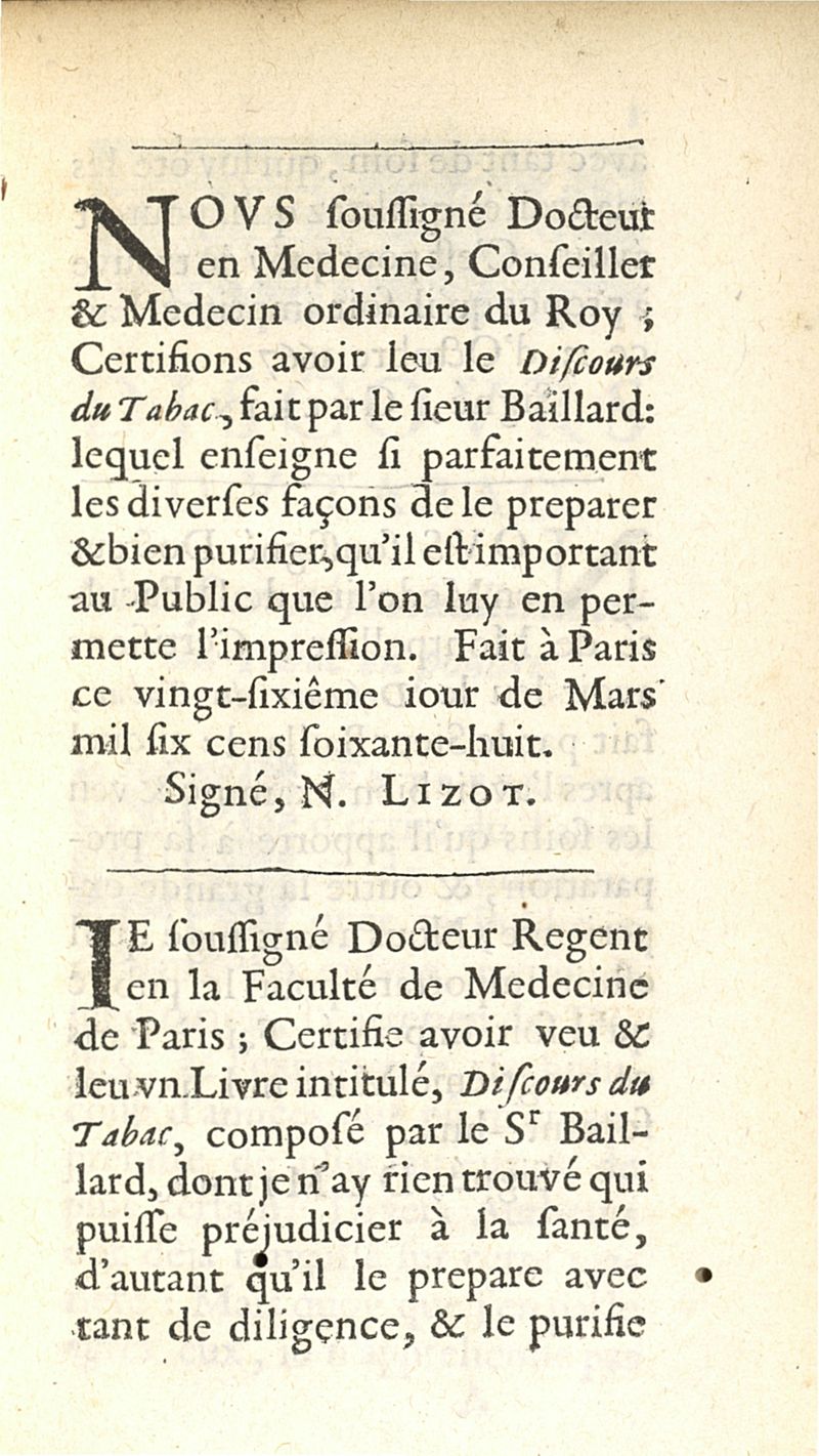 Discours du tabac ou il est traité particulièrement du tabac en poudre
