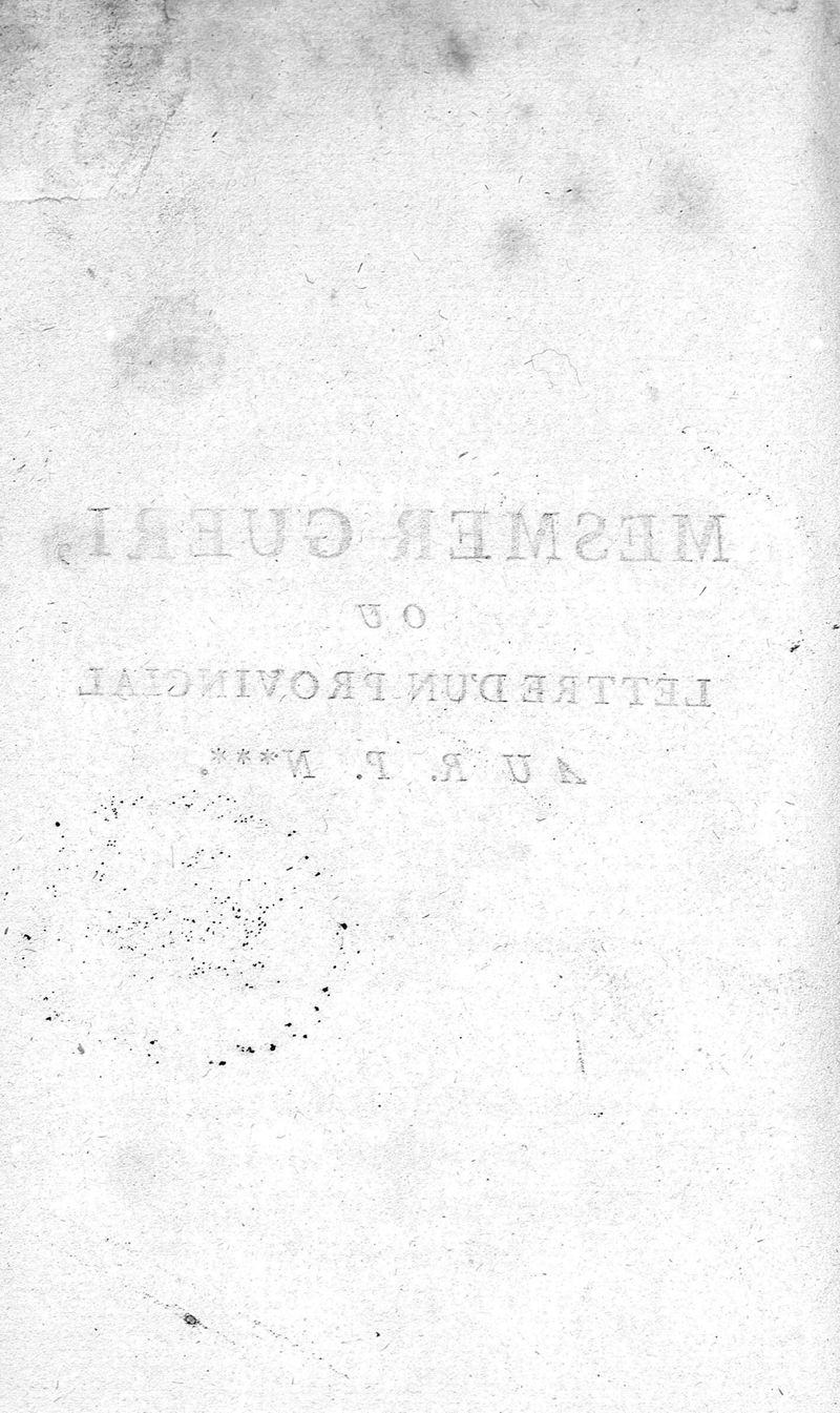 Mesmer Guéri ; ou Lettre d'un Provincial au R. P. N***, en réponse à sa Lettre intitulée : Mesmer blessé.