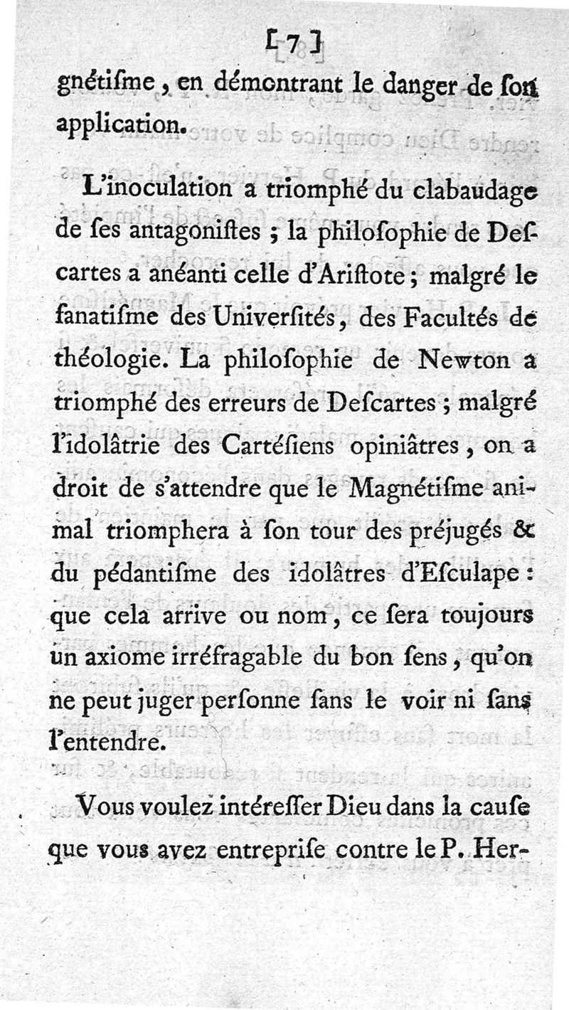 Mesmer Guéri ; ou Lettre d'un Provincial au R. P. N***, en réponse à sa Lettre intitulée : Mesmer blessé.