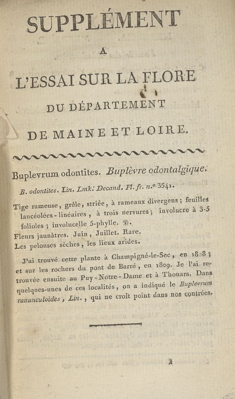 Supplément à l'essai sur la flore du département de Maine et Loire