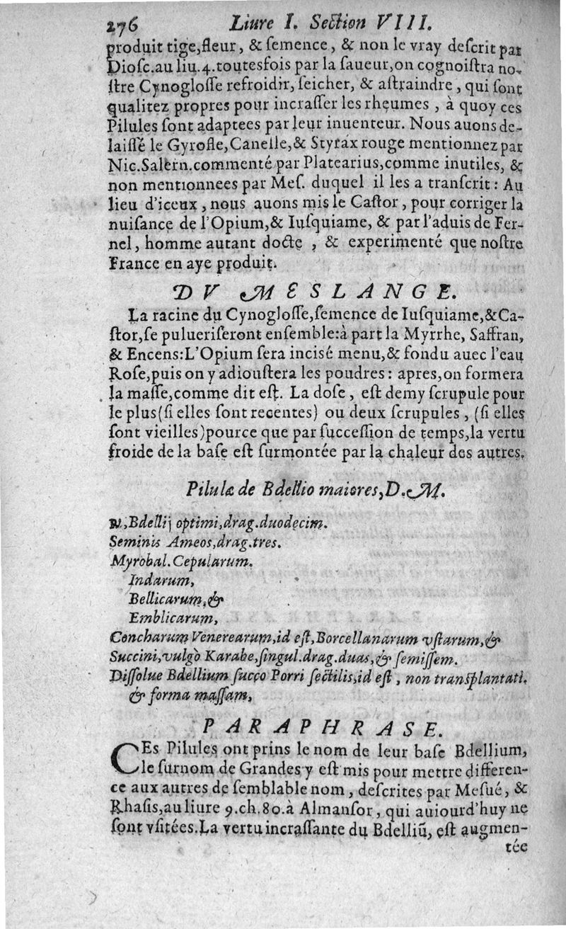 Paraphrase sur la pharmacopée divisée en deux livres...reveüe, corrigée, & augmentée par l'Autheur. Ensemble un traicté des Eaux distillées, qu'un Apothicaire doit tenir en sa boutique, faict par Laurent Catelan,...derniere edition