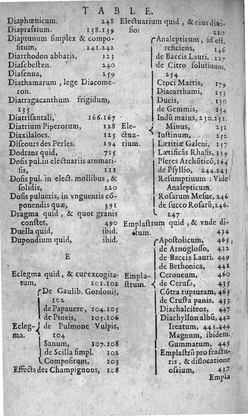Paraphrase sur la pharmacopée divisée en deux livres...reveüe, corrigée, & augmentée par l'Autheur. Ensemble un traicté des Eaux distillées, qu'un Apothicaire doit tenir en sa boutique, faict par Laurent Catelan,...derniere edition