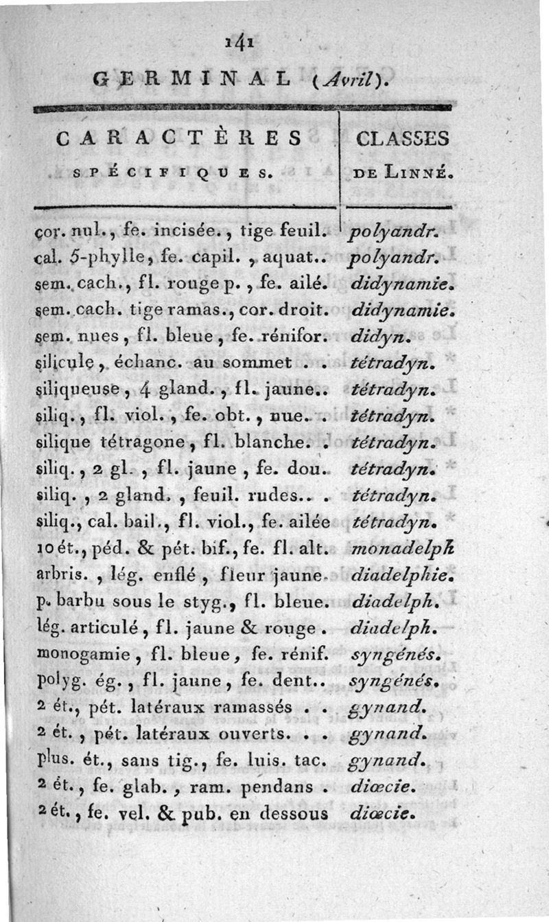 Calendrier de flore des environs de Niort, ou tems approximatif de la floraison d'à peu près onze cents Plantes, décrites & classées méthodiquement, mois par mois, suivant le systême sexuel du célèbre Linnée ; précédé d'un Abrégé élémentaire de botanique. Par le docteur J.L.M. Guillemeau, jeune...