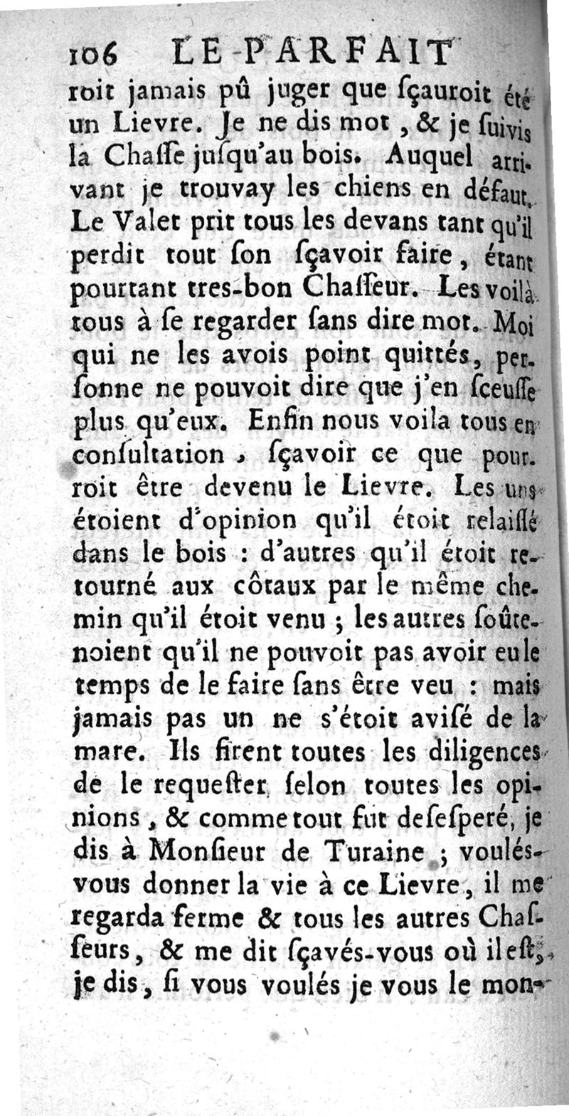 Le Parfait Chasseur. Pour l'Instruction des personnes de qualité ou autres qui aiment la Chasse, pour se rendre capables de cet Exercice, apprendre aux Veneurs, Picqueurs, Fauconniers, & Valets de Chiens à servir dans les grands Equipages ... Par Mr De Selincourt