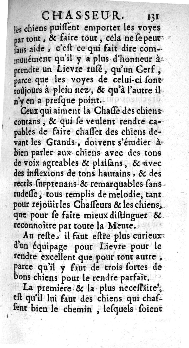 Le Parfait Chasseur. Pour l'Instruction des personnes de qualité ou autres qui aiment la Chasse, pour se rendre capables de cet Exercice, apprendre aux Veneurs, Picqueurs, Fauconniers, & Valets de Chiens à servir dans les grands Equipages ... Par Mr De Selincourt