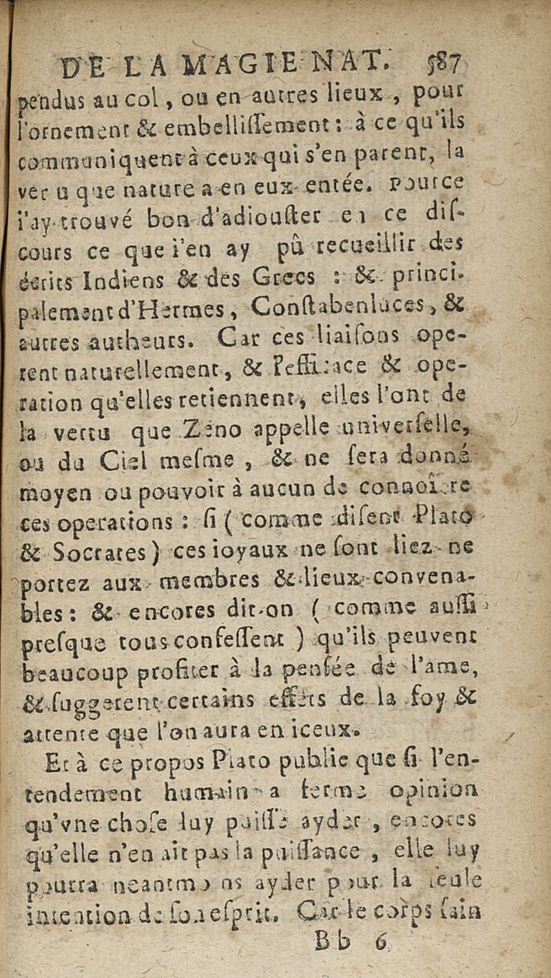 La magie naturelle qui est, les secrets & miracles de nature mise en quatre livres, par Jean Baptiste Porta,...avec une table des principales matieres qui y sont contenuës. Nouvellement traduite de latin en françois