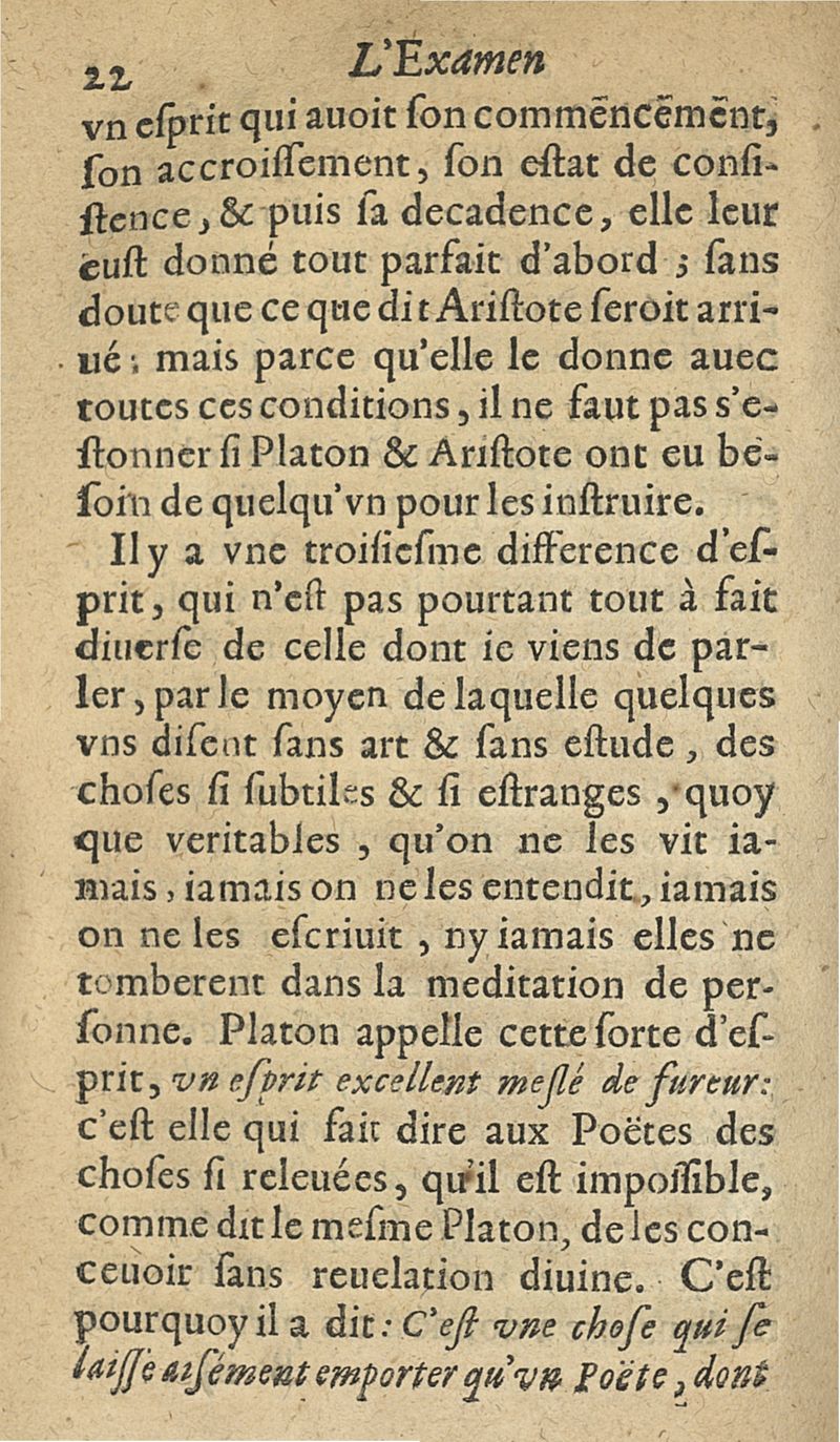 L'examen des esprits pour les sciences où se monstrent les différences d'Esprits...augmenté de la derniere impression d'Espagne