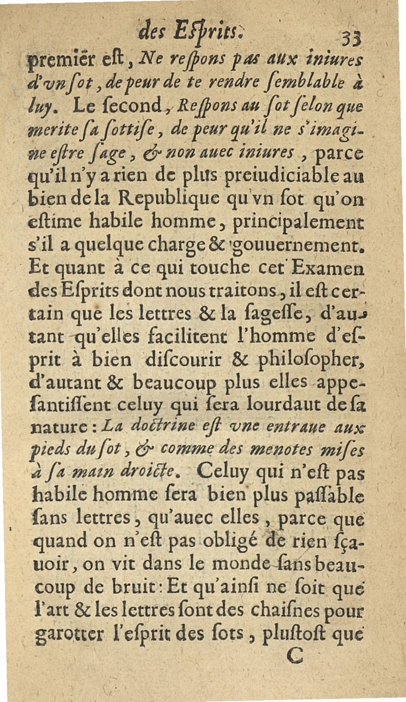 L'examen des esprits pour les sciences où se monstrent les différences d'Esprits...augmenté de la derniere impression d'Espagne