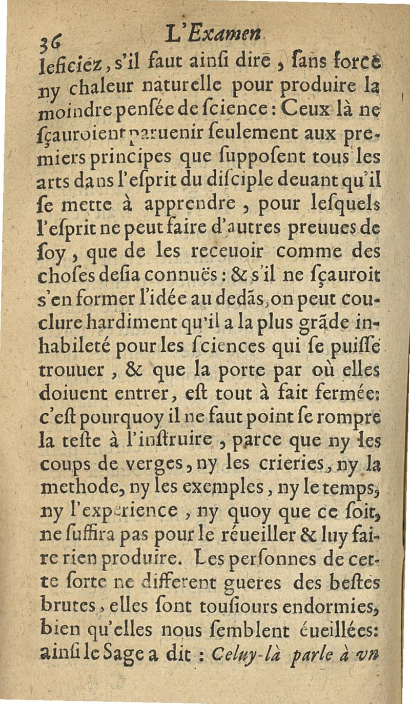 L'examen des esprits pour les sciences où se monstrent les différences d'Esprits...augmenté de la derniere impression d'Espagne