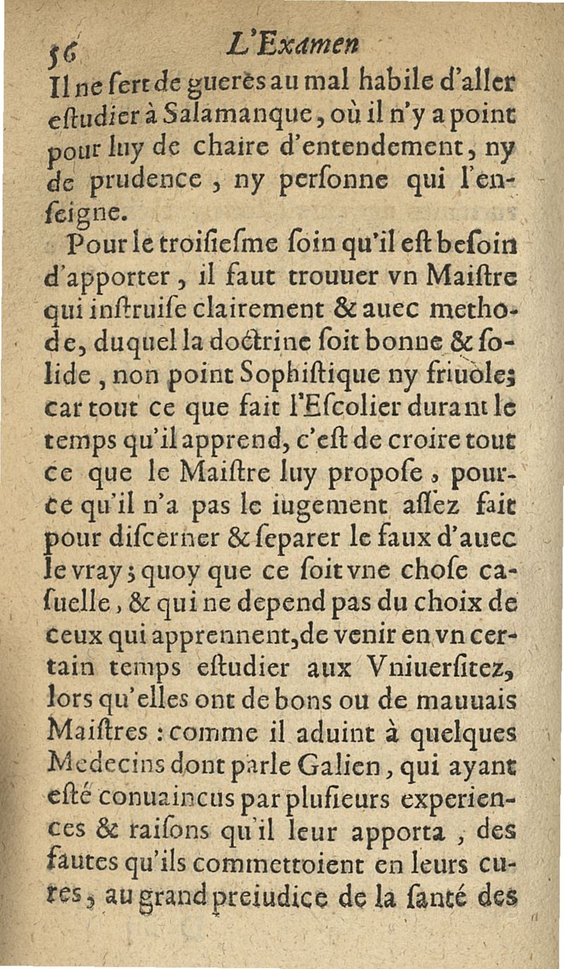 L'examen des esprits pour les sciences où se monstrent les différences d'Esprits...augmenté de la derniere impression d'Espagne