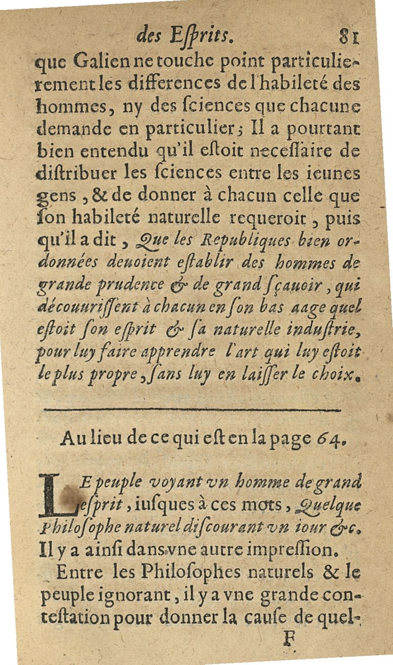 L'examen des esprits pour les sciences où se monstrent les différences d'Esprits...augmenté de la derniere impression d'Espagne