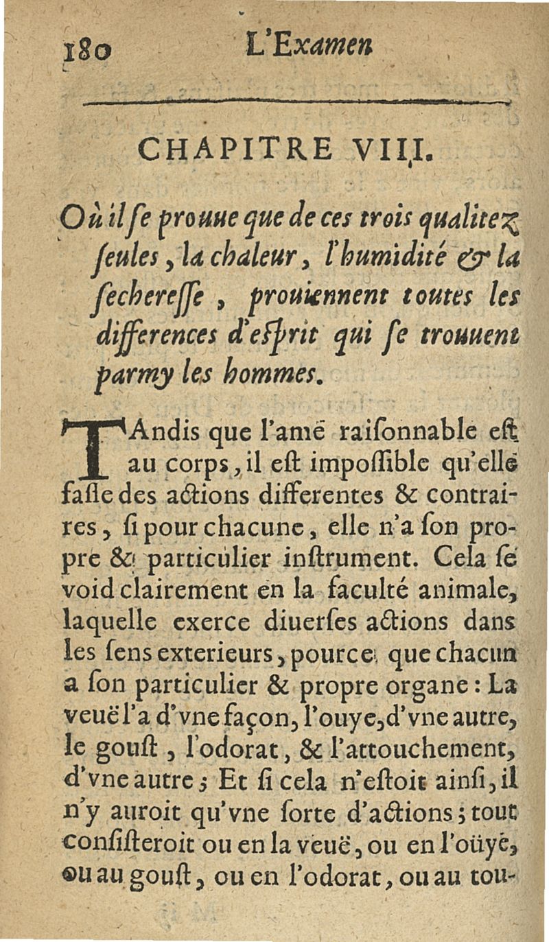 L'examen des esprits pour les sciences où se monstrent les différences d'Esprits...augmenté de la derniere impression d'Espagne