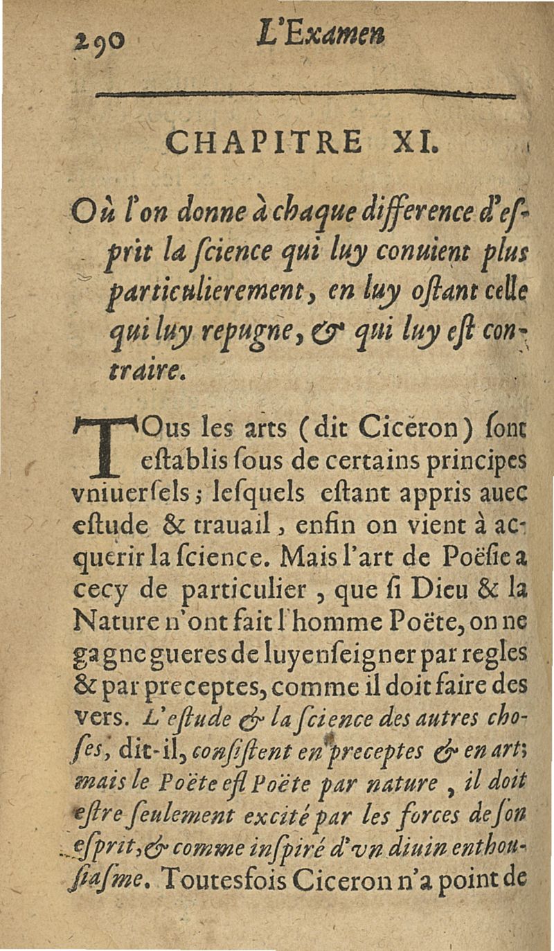 L'examen des esprits pour les sciences où se monstrent les différences d'Esprits...augmenté de la derniere impression d'Espagne