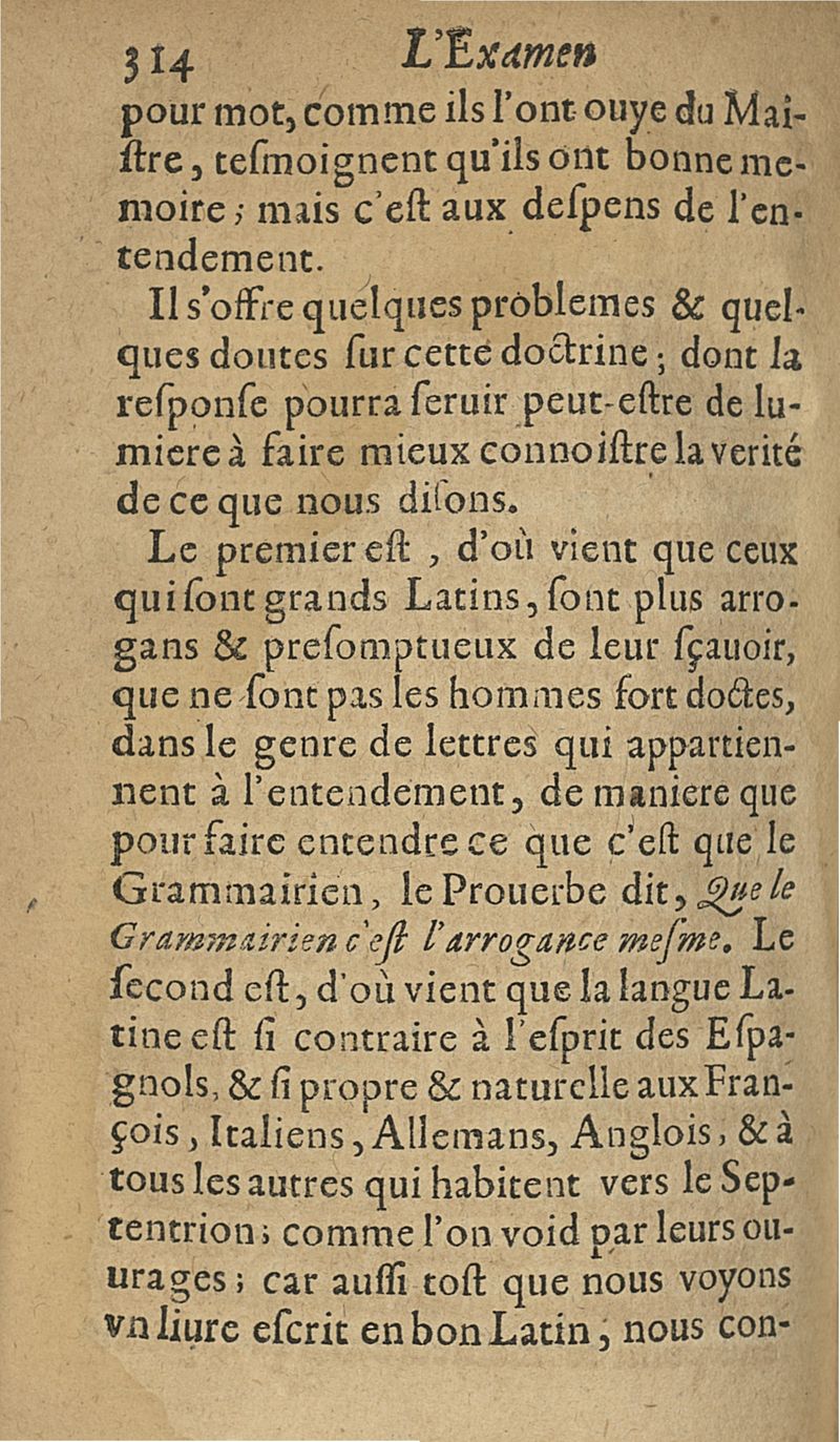 L'examen des esprits pour les sciences où se monstrent les différences d'Esprits...augmenté de la derniere impression d'Espagne