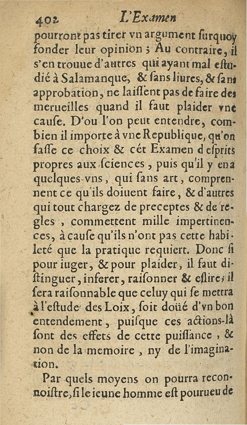 L'examen des esprits pour les sciences où se monstrent les différences d'Esprits...augmenté de la derniere impression d'Espagne