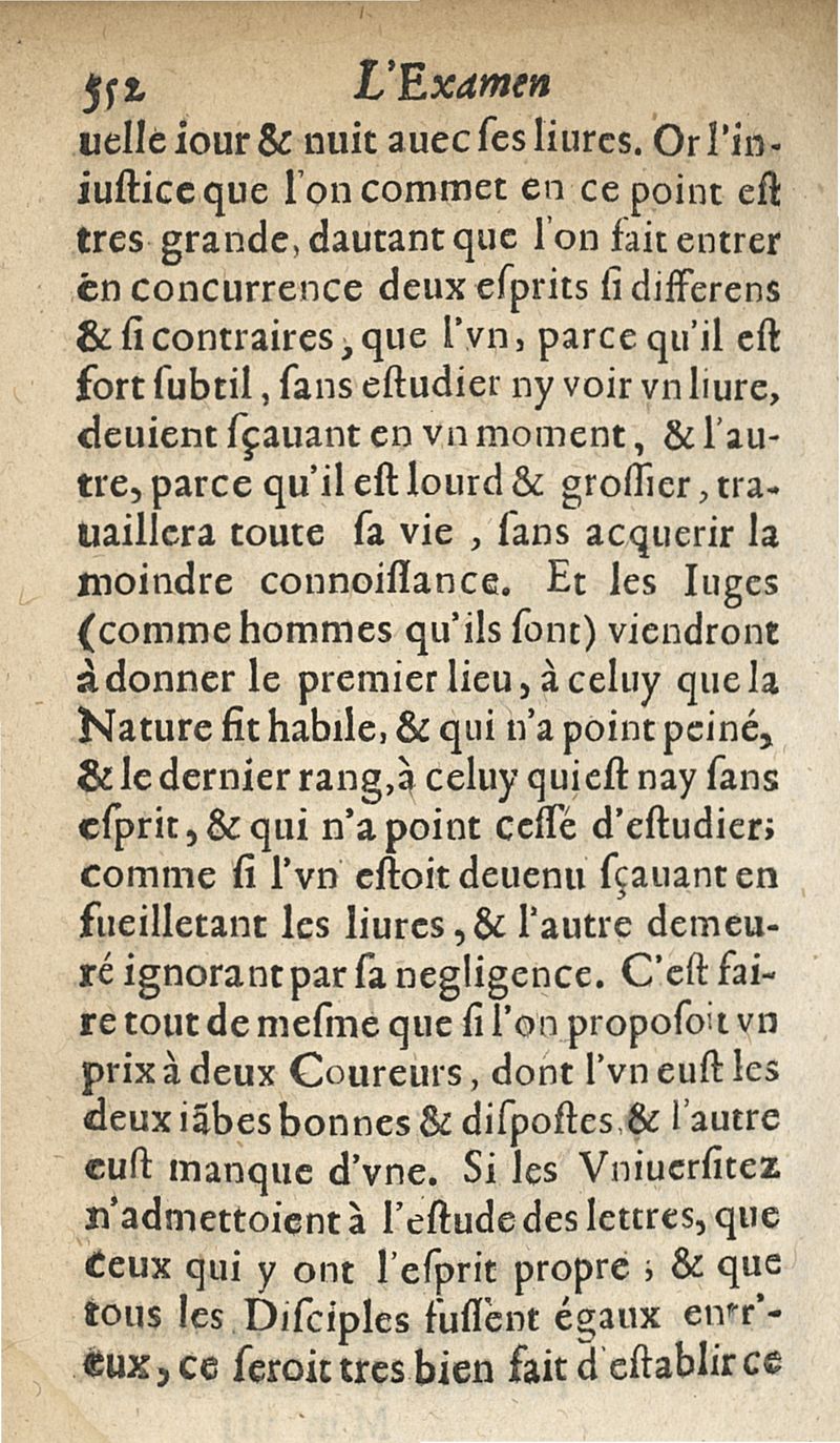 L'examen des esprits pour les sciences où se monstrent les différences d'Esprits...augmenté de la derniere impression d'Espagne