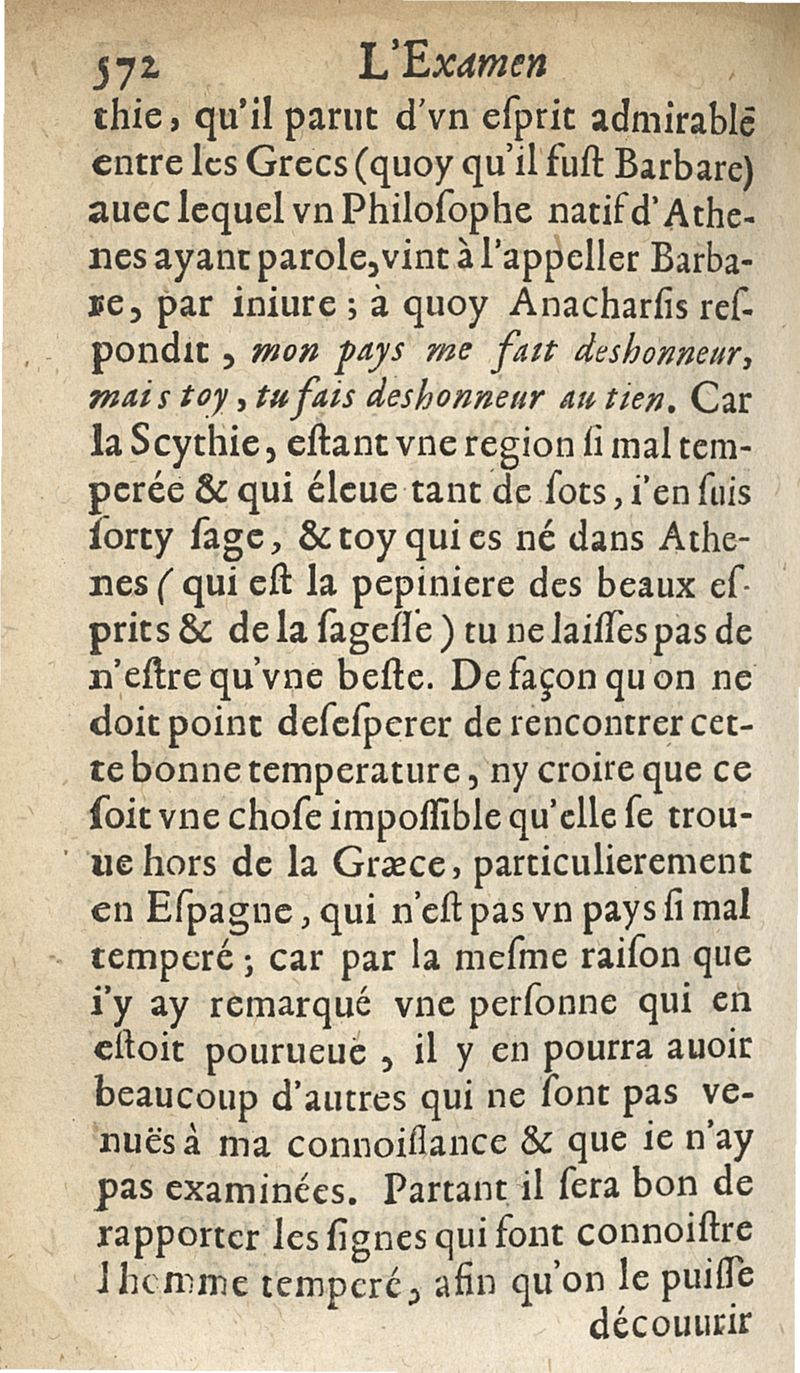 L'examen des esprits pour les sciences où se monstrent les différences d'Esprits...augmenté de la derniere impression d'Espagne