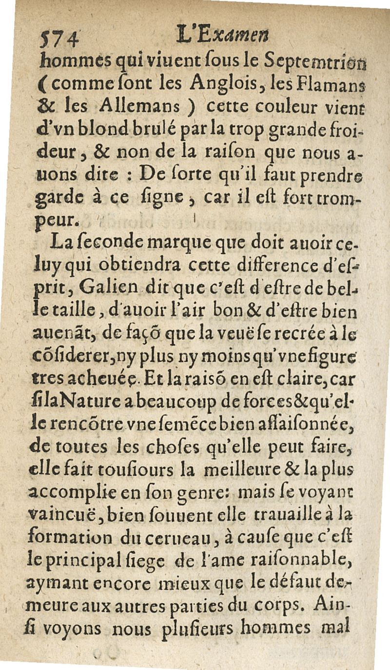 L'examen des esprits pour les sciences où se monstrent les différences d'Esprits...augmenté de la derniere impression d'Espagne