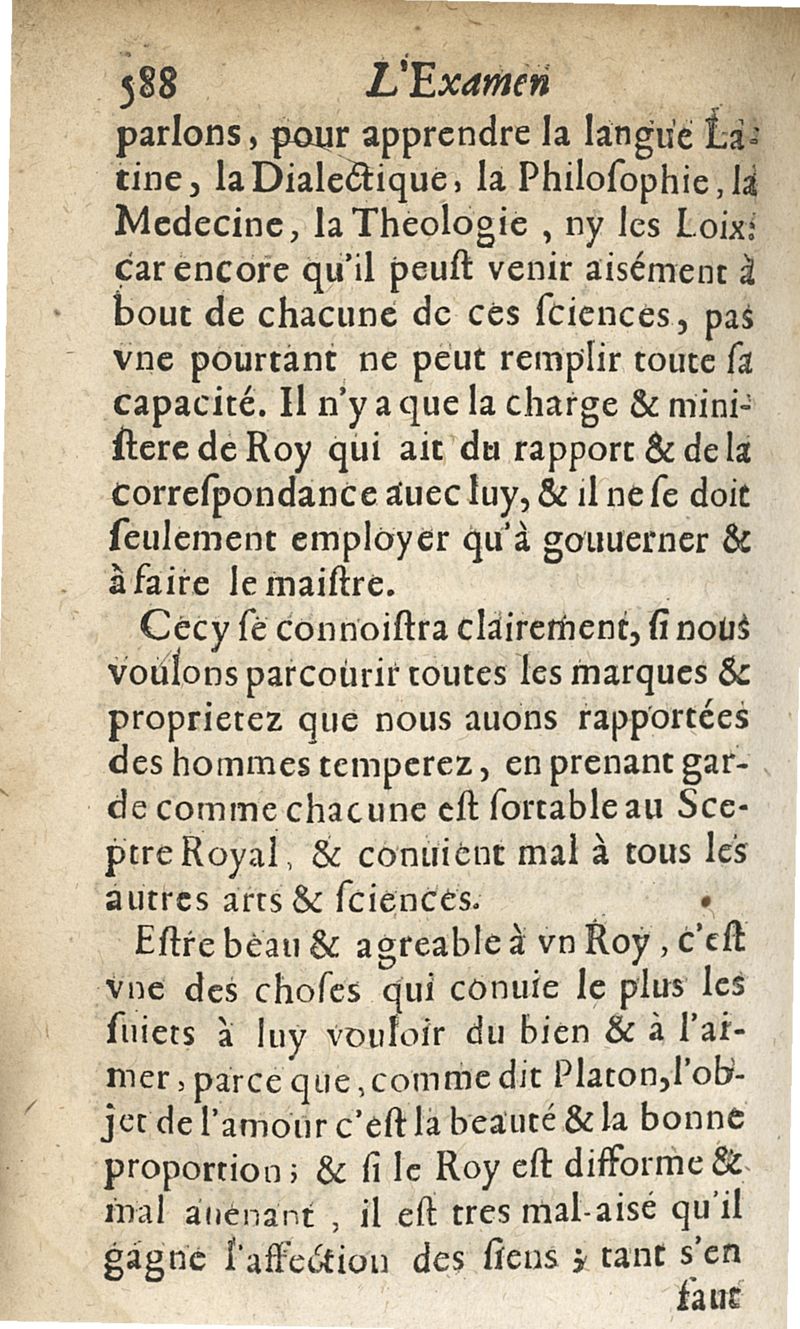 L'examen des esprits pour les sciences où se monstrent les différences d'Esprits...augmenté de la derniere impression d'Espagne
