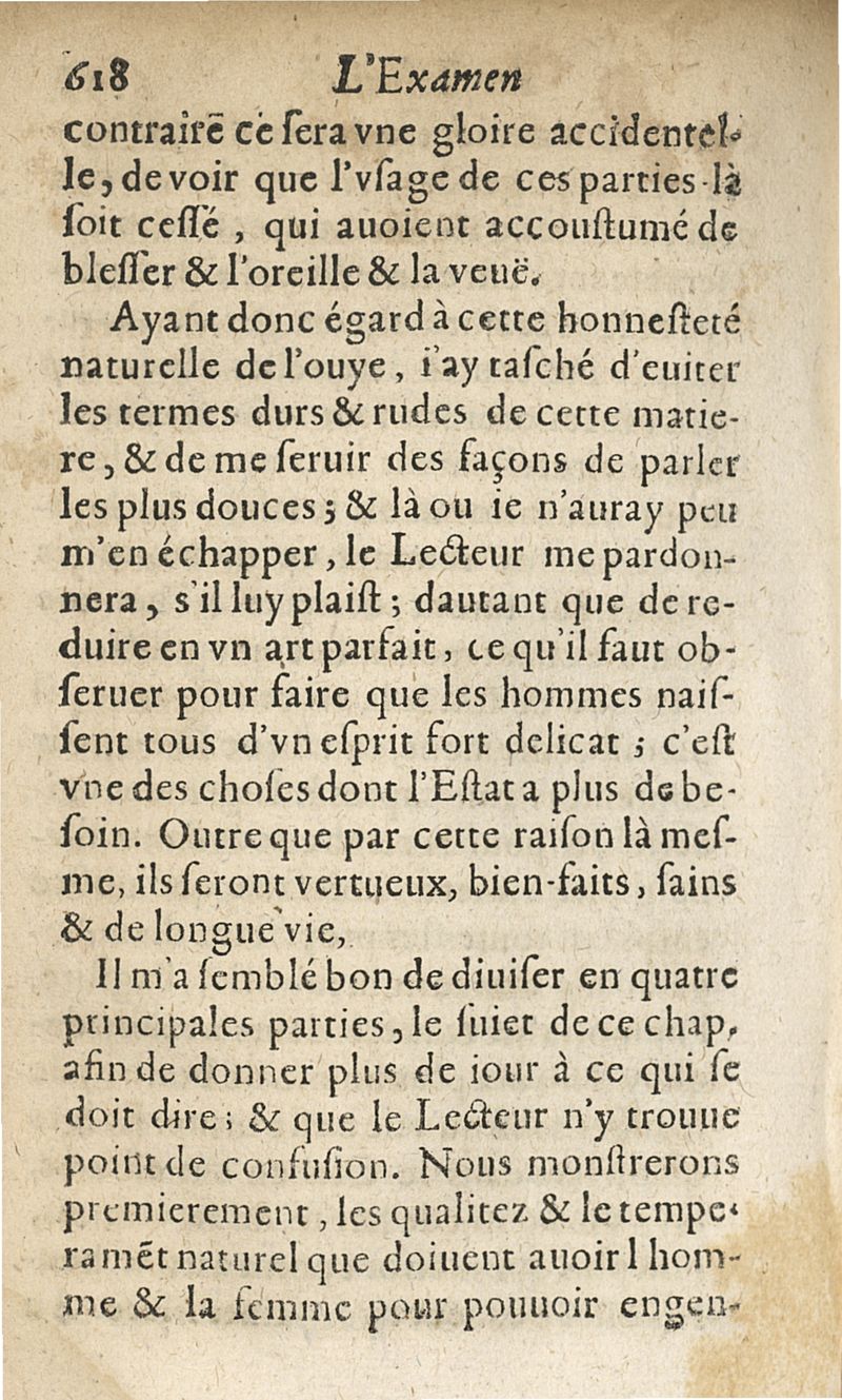 L'examen des esprits pour les sciences où se monstrent les différences d'Esprits...augmenté de la derniere impression d'Espagne