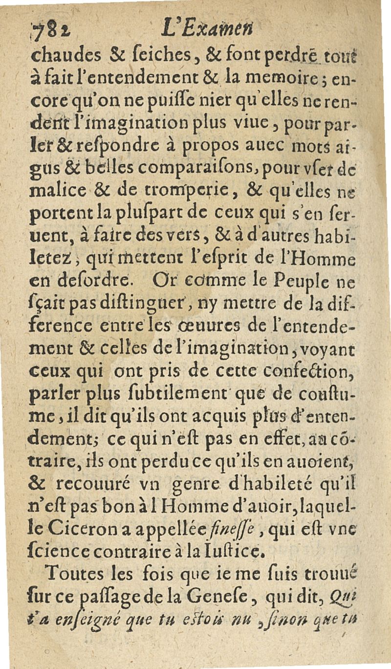 L'examen des esprits pour les sciences où se monstrent les différences d'Esprits...augmenté de la derniere impression d'Espagne