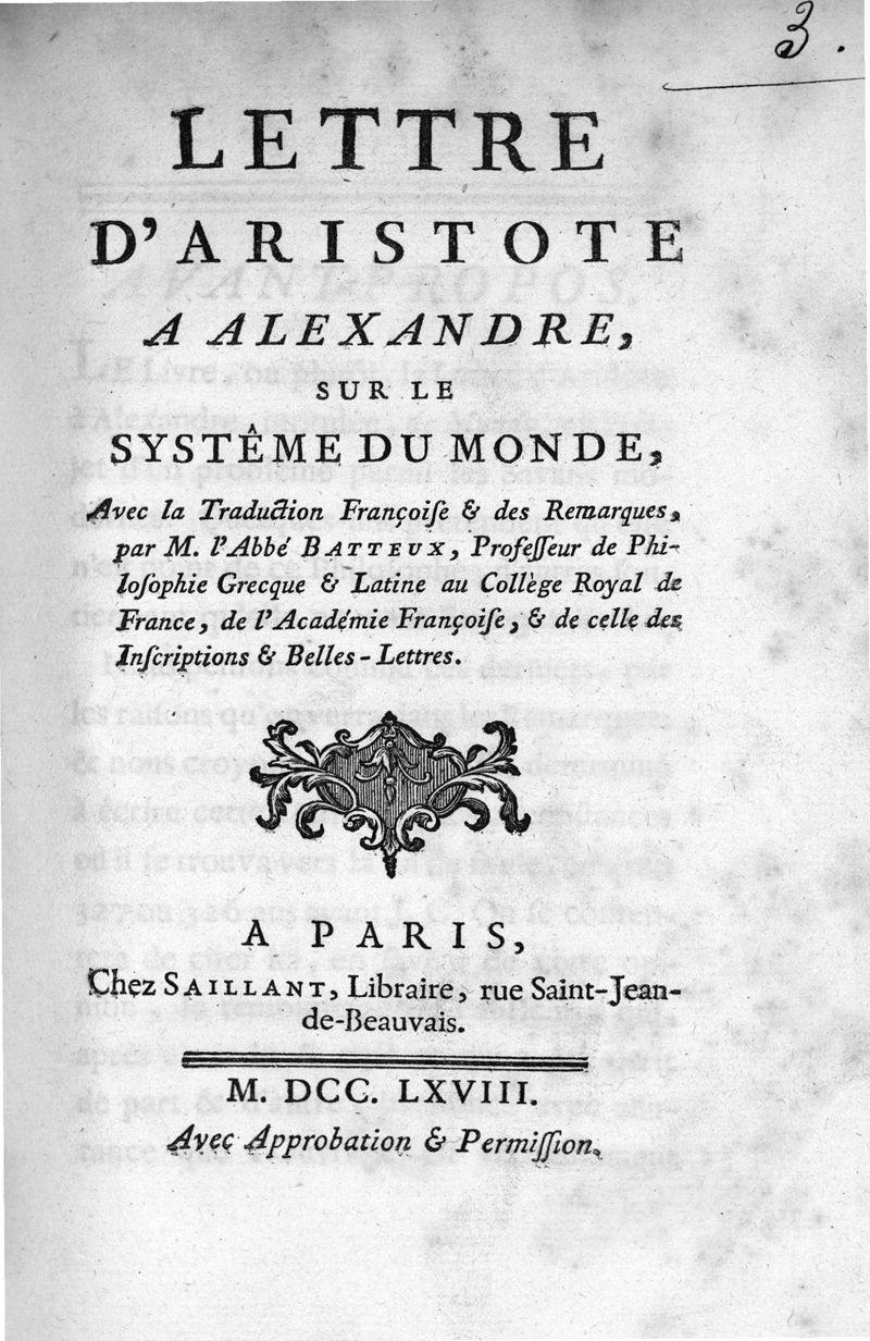 Lettre d'Aristote à Alexandre sur le système du monde
