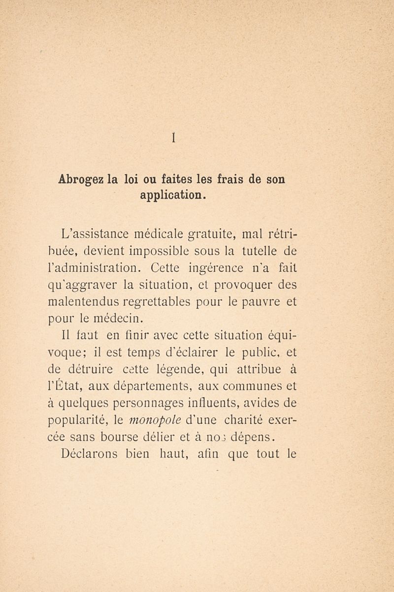Le Pauvre et son médecin devant la loi sur l'assistance médicale gratuite