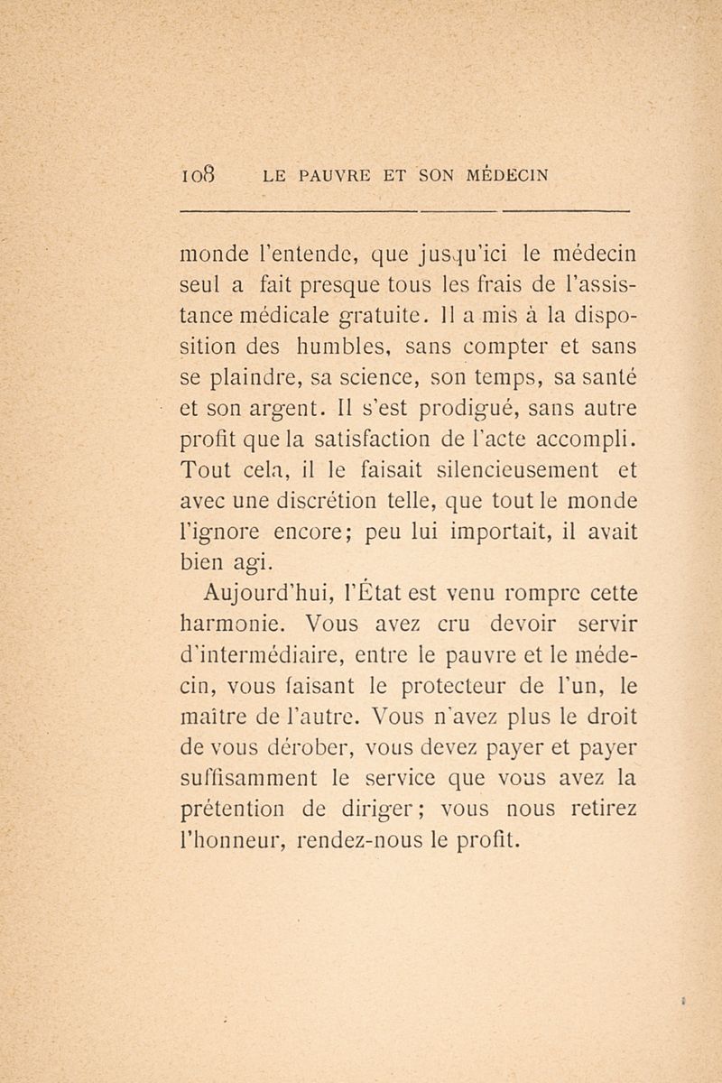 Le Pauvre et son médecin devant la loi sur l'assistance médicale gratuite