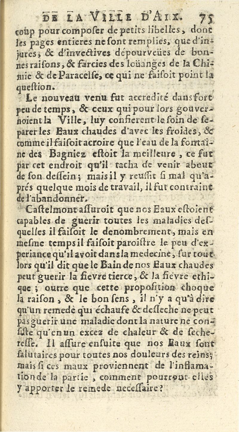 Les eaux chaudes de la ville d'Aix, de leur vertu, à quelles maladies elles sont utiles ; & de la façon de s'en servir...