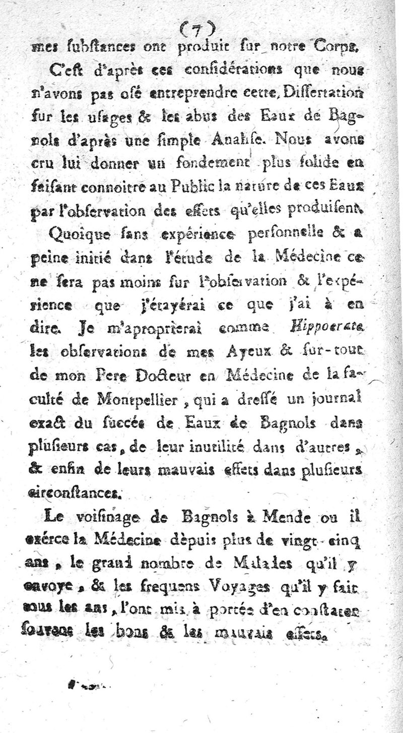 Dissertation sur la nature et l'usage et l'abus des eaux thermales de Bagnols en Gévaudan