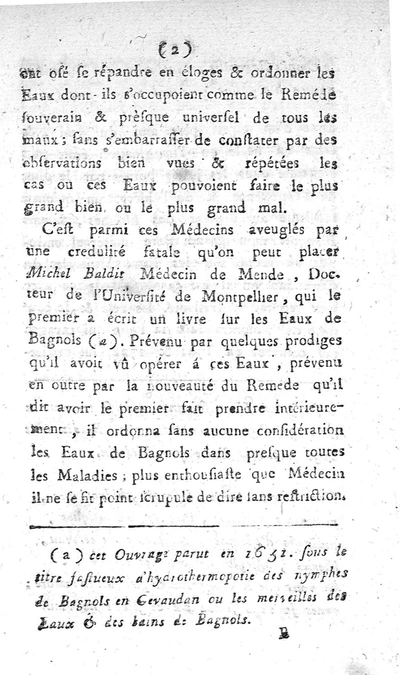 Dissertation sur la nature et l'usage et l'abus des eaux thermales de Bagnols en Gévaudan