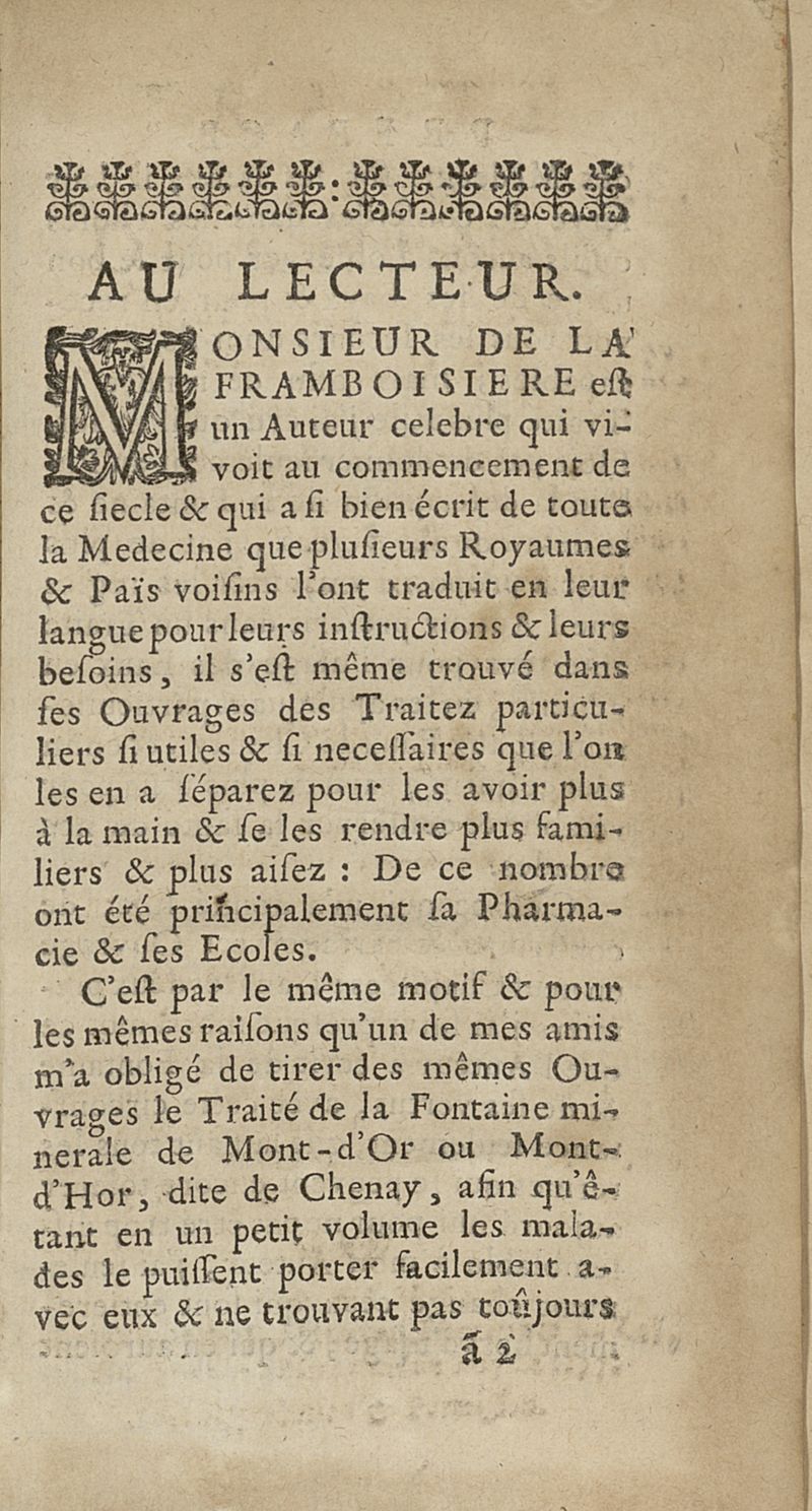 Traité des eaux minerales de Chenay près de Reims en Champagne. Avec la maniere d'en user. Tiré des ouvrages de Monsieur de la Framboisiere,...