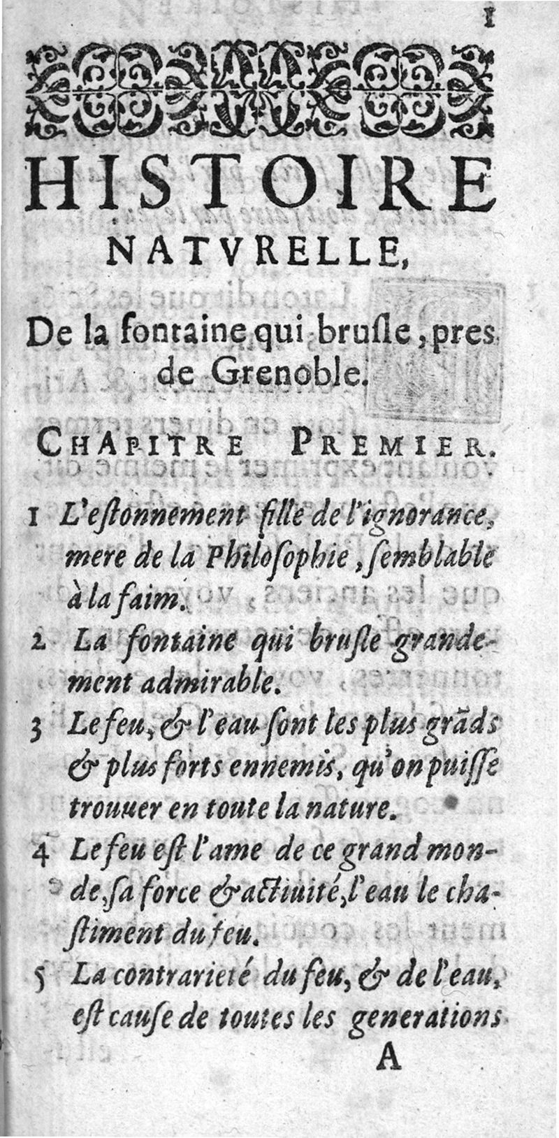 Histoire naturelle de la fontaine qui brusle près de Grenoble, Tournon, G. Linocier, 1618