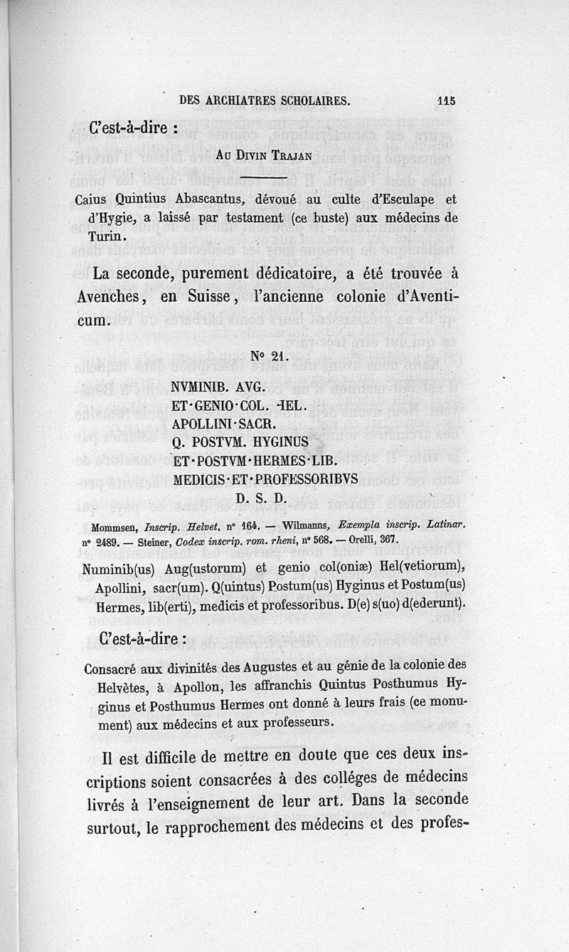 L'archiatrie romaine ou la médecine officielle dans l'Empire romain. Suite de l'histoire de la profession médicale par le Dr René Briau, bibliothécaire de l'Académie de médecine