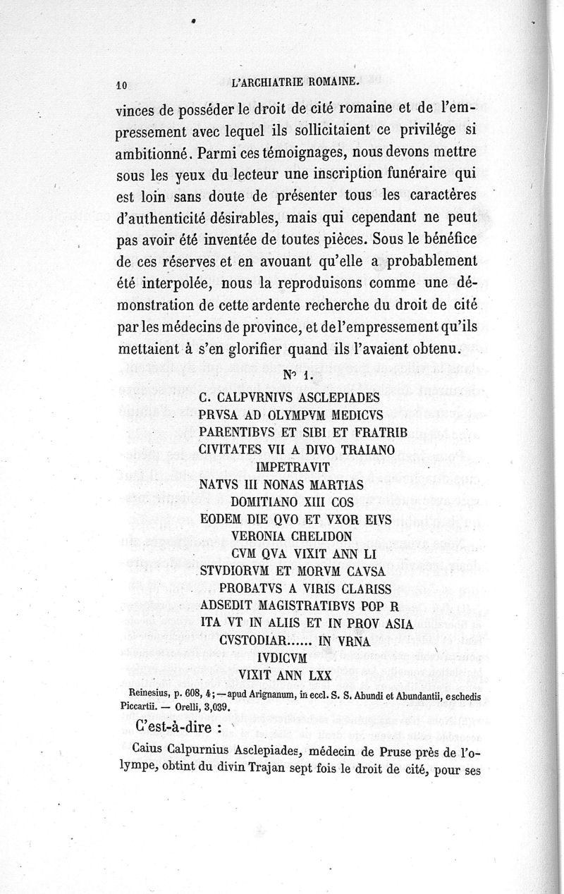 L'archiatrie romaine ou la médecine officielle dans l'Empire romain. Suite de l'histoire de la profession médicale par le Dr René Briau, bibliothécaire de l'Académie de médecine