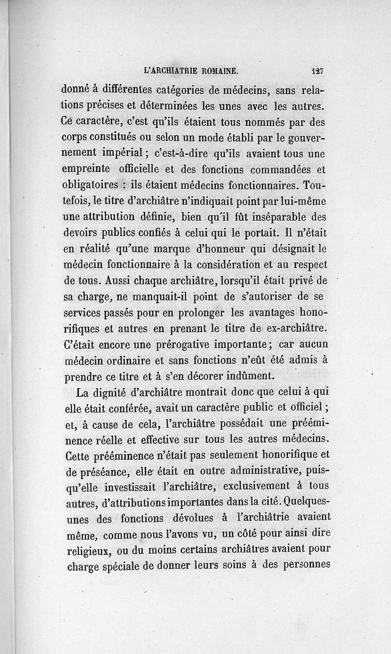 L'archiatrie romaine ou la médecine officielle dans l'Empire romain. Suite de l'histoire de la profession médicale par le Dr René Briau, bibliothécaire de l'Académie de médecine