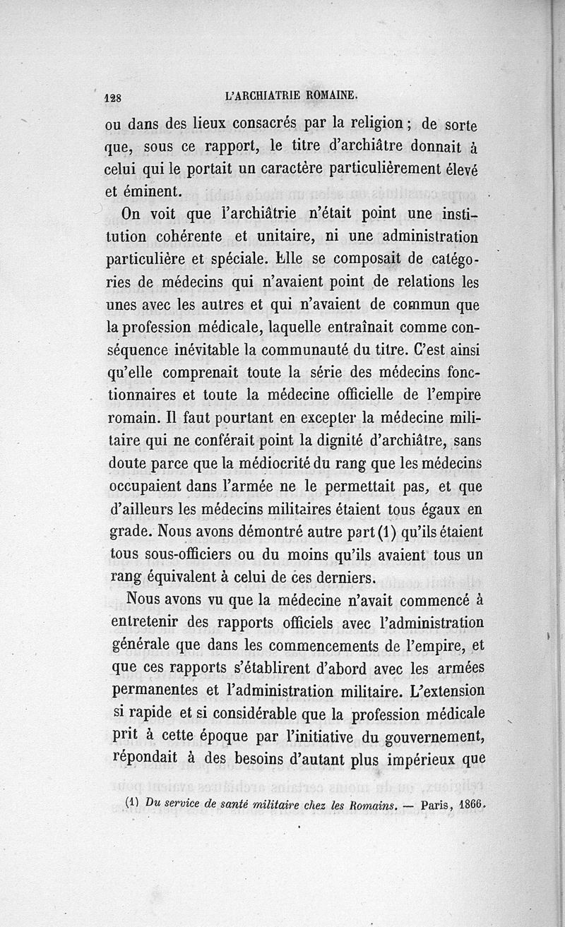 L'archiatrie romaine ou la médecine officielle dans l'Empire romain. Suite de l'histoire de la profession médicale par le Dr René Briau, bibliothécaire de l'Académie de médecine