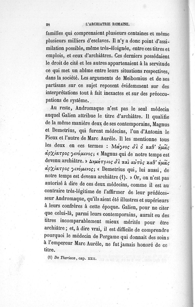 L'archiatrie romaine ou la médecine officielle dans l'Empire romain. Suite de l'histoire de la profession médicale par le Dr René Briau, bibliothécaire de l'Académie de médecine