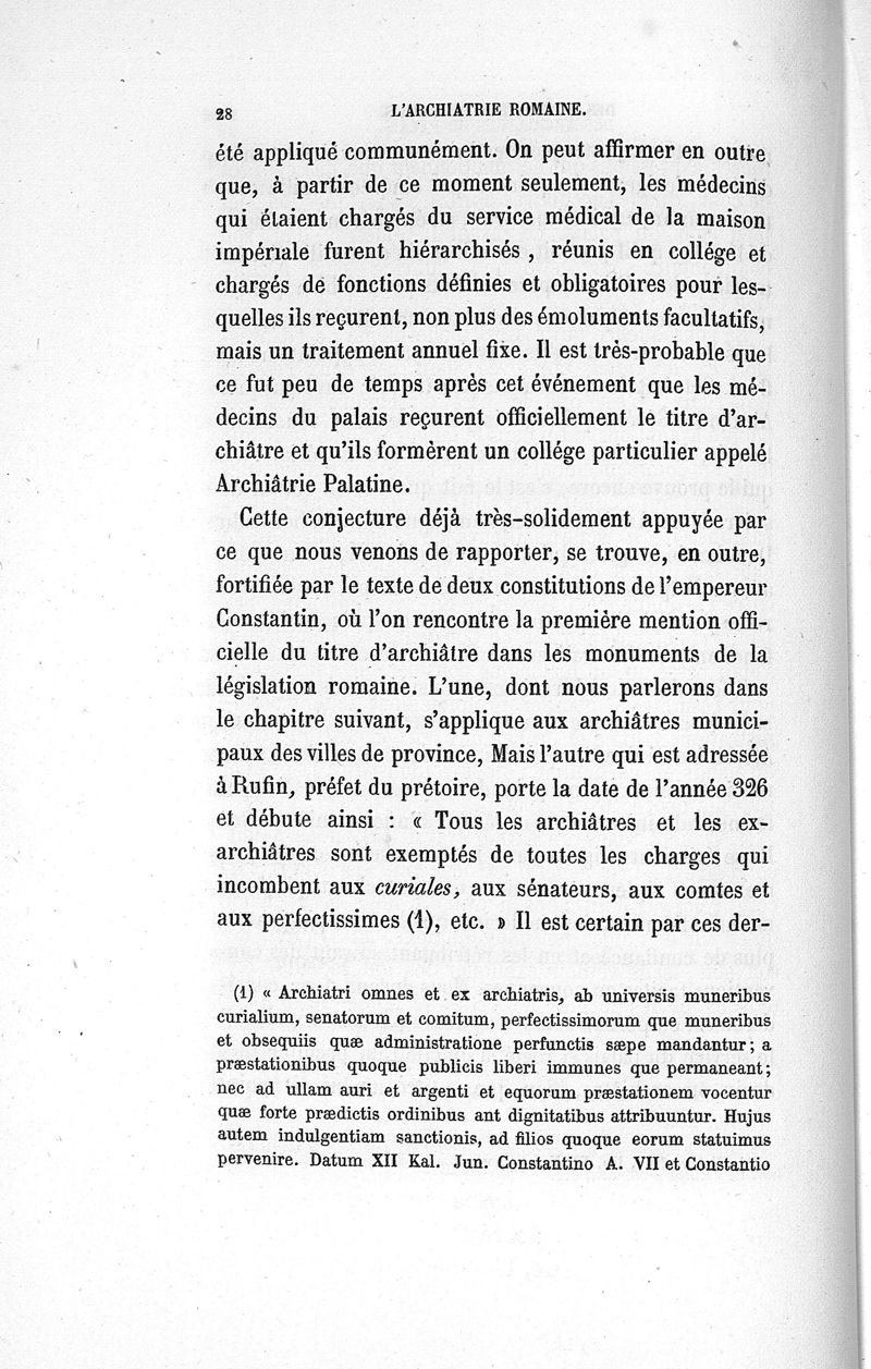 L'archiatrie romaine ou la médecine officielle dans l'Empire romain. Suite de l'histoire de la profession médicale par le Dr René Briau, bibliothécaire de l'Académie de médecine