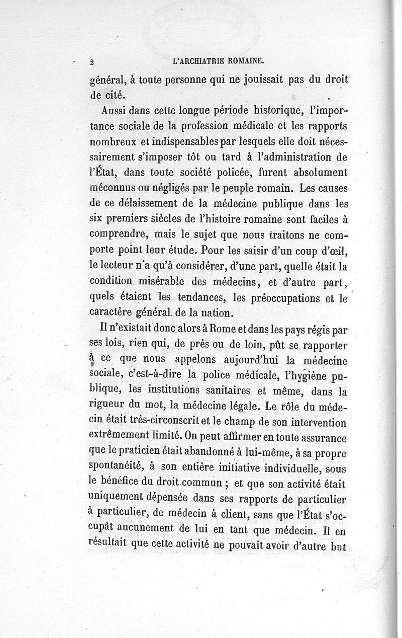 L'archiatrie romaine ou la médecine officielle dans l'Empire romain. Suite de l'histoire de la profession médicale par le Dr René Briau, bibliothécaire de l'Académie de médecine