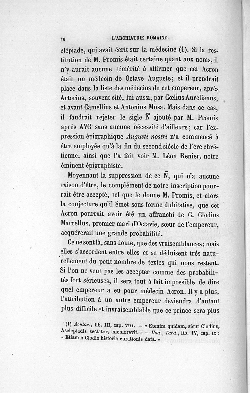 L'archiatrie romaine ou la médecine officielle dans l'Empire romain. Suite de l'histoire de la profession médicale par le Dr René Briau, bibliothécaire de l'Académie de médecine